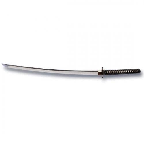 The Japanese swords of the Imperial Series have proven, since their initial introduction almost two years ago, to be quite popular with many of our customers. Still, Cold Steel is aware that there are some people who want a battle ready sword but hope to find one at a more affordable price: Cold Steel's Warrior Series addresses this problem directly. In our efforts to reduce the costliness of the blades, Cold Steel has omitted the expensive mirror polishing that was used on the Imperial swords to create a new series of Japanese swords with a more practical finish: The Warrior Series swords are very handsome in their own right and share the same steel, heat treatment, and sharpness as their more expensive Imperial counterparts. Like the Imperial swords, they have Samé covered, cord wrapped handles and quality fittings. If you're in the market for a strong, good looking, reasonably priced Japanese sword we know you'll be happy to own one of these. Overall Length: 40-3/4". Blade Length: 29-3/8". Thickness: 19/32". Weight: 40.6 oz. Steel: 1050 Carbon Steel. Scabbard: Black Lacquered wood sheaths with blue violet cover bag.