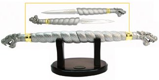 This amazing sword is crafted of stainless steel, in order to replicate as closely as possible the composition of the blade. The nodachi measures an extraordinary 5 feet 6 inches overall with a full tang blade that measures 43" long which continues an extra 23 inch into the handle. The diameter of the steel tsuba is 3.25 inches and it is hand made. The leather braided handle and matching leather braided scabbard, with a back strap, and high gloss dark brown polish paint finish the sweeping look of this absolutely superb sword!